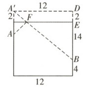 $16.($易错题$)[$空间观念$]$如图,一个圆柱形杯子高为$18cm,$底面周长为$24cm,$在杯内壁离杯底$4cm$的点$B$处有一滴蜂蜜,此时一只蚂蚁正好在杯外壁,离杯上沿$2cm$与蜂蜜相对的点$A$处,则蚂蚁从外壁$A$处到达内壁$B$处的最短距离为$________cm.$