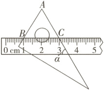 $11.($江西中考$)$将含$30°$角的直角三角板和直尺按如图所示的方式放置,已知$∠α=60°,$点$B,$$C$表示的刻度分别为$1 cm,$$3 cm,$则线段$AB$的长为$_______ cm.$