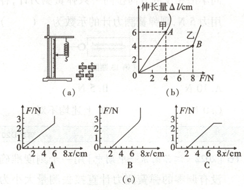 (4)小欣接着自己动手制作弹簧测力计,她选了甲、乙两种规格不同的弹簧进行测试,绘出如图(b)所示的图像。若她要制作精确度较高的弹簧测力计,应选弹簧________(填“甲”或“乙”)。