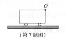 7. 链教材P51图8 - 20(b)改编如图所示,小华要用20N的力拉着小车走,拉力的方向与水平面成30°角斜向右上方,请画出小车所受拉力的图示。(图中已标出该拉力的作用点O)