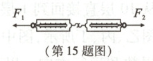 15如图所示,将两个相同的轻质弹簧测力计的挂钩挂在一起,然后用两只手捏住外壳上的拉环沿水平方向拉,两只手对拉环的拉力F1、F2大小相等,设F;=F=F,则当两个弹簧测力计静 止时 ( )