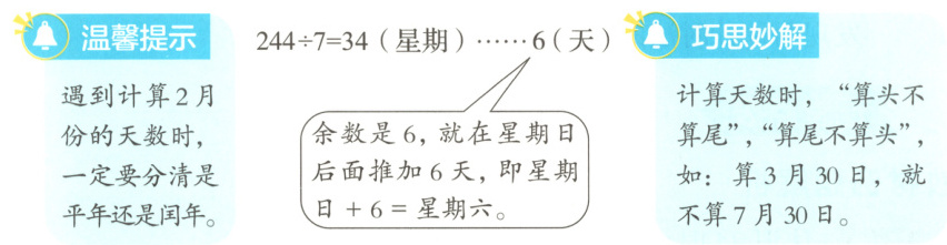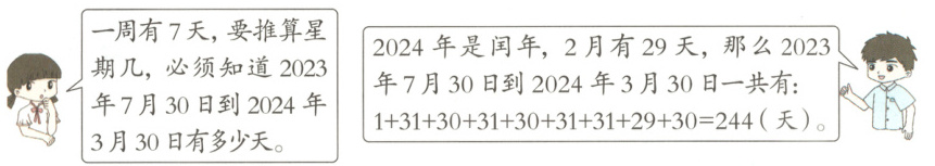 例题 2023年7月30日是星期日,你能推算出2024年3月30日是星期几吗?