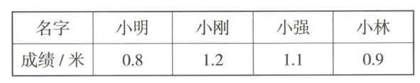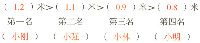 从米尺上找到的表示跳高成绩的刻度可以看出:1.2>1.1>0.9>0.8