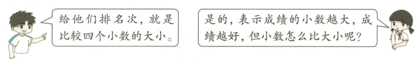 问题呈现 下面是四名男生的跳高成绩,请给他们排出名次。(教材86页例2)