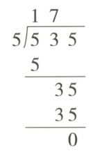 错误分析 错误解答中,(1)错在被除数十位上的3没有落下来与5合起来继续除;(2)错在被除数十位上的数不够除,没有商0占位。