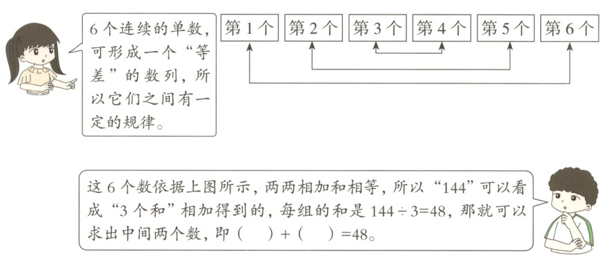 例题 已知6个连续单数的和是144,这6个数分别是多少?