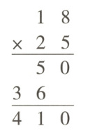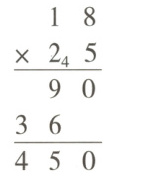 错误分析 错误解答中,(1)十位上2乘18时,积的末位对错了位;(2)个位上5乘18时,忘记进位。