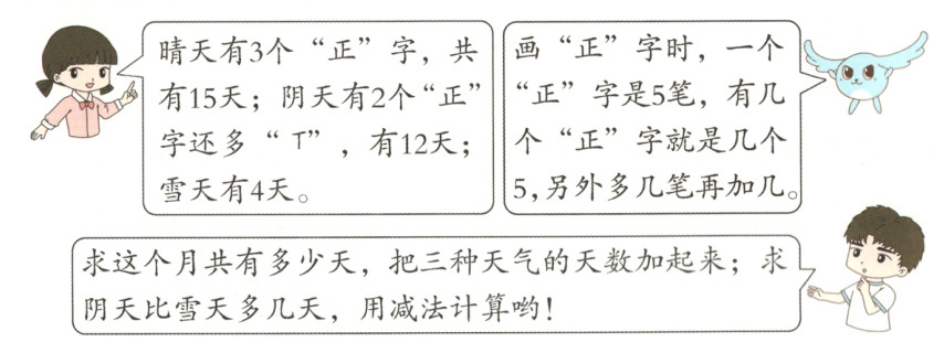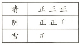 例 右边是小明记录的一个月的天气情况。(教材4页第3题)