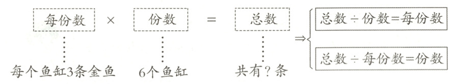 (1)每个鱼缸有3条金鱼,6个鱼缸共有( )条金鱼。