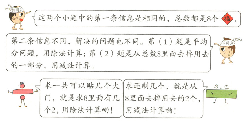 规范解答 (1)8÷2 = 4(个) 口答:一共可以贴4个大门。