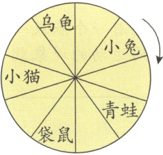 (2)当小兔转到袋鼠现在的位置时,青蛙转到( )现在的位置上,小猫转到( )现在的位置上。