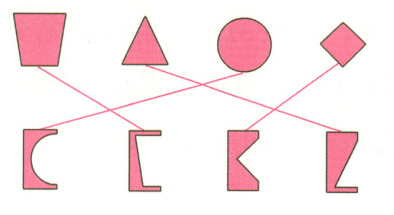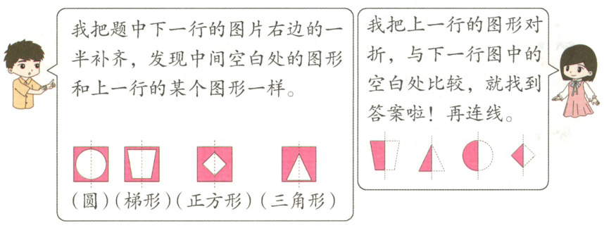 例1 下面的图形分别是从哪张对折后的纸上剪下来的?连一连。(教材33页第2题)