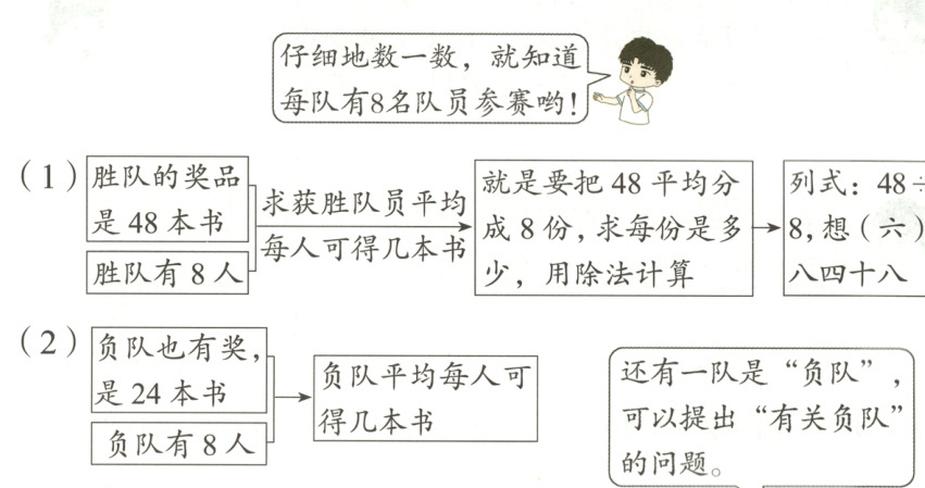 思路导引 要求获胜队员平均每人可得几本书,必须知道两条信息:①胜队奖品的总数,②获胜队有几名队员。