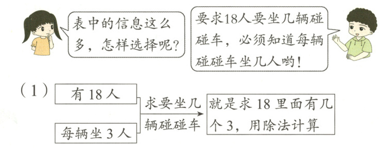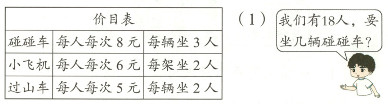 规范解答 (1)18÷3 = 6(辆) 口答:要坐6辆碰碰车。