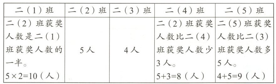 (2)二(5)班获奖人数比二(3)班获奖人数多5人,二(5)班有( )名同学获奖。