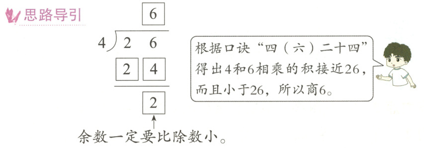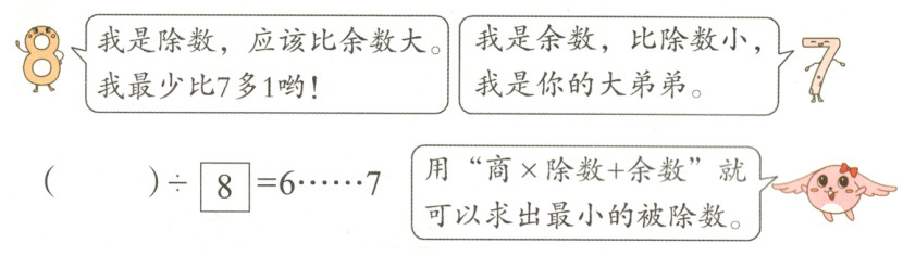 例1 在算式( )÷____=6……7中,被除数最小应是多少?