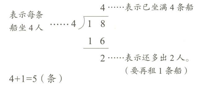 求要租几条船,就是求18里面有几个4,应该用除法解答列式为: