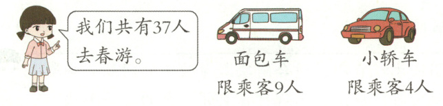 都乘面包车:37-9=4(辆)…(人),4+1=5(辆)
