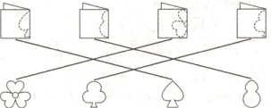 三 下面各图沿虚线剪下,打开后分别是什么图形?把对应的两个图形用线连起来。