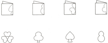 一 先将一张长方形的纸对折,再画上轮廓线沿着轮廓线剪开。(如图所示)
