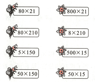 三 小蜜蜂采花蜜。(把结果相同的算式连起来)