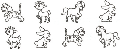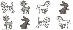 二 把能通过平移完全重合的两只小动物涂上相同的颜色。