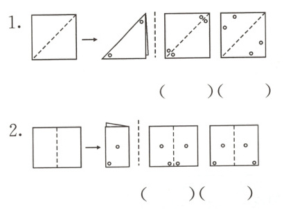 五 按下面的方法做,展开后是什么图形? 想一想,选一选。(在括号里画“√”)