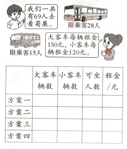 大客车车辆数 小客车车辆数 可坐人数 租金/元