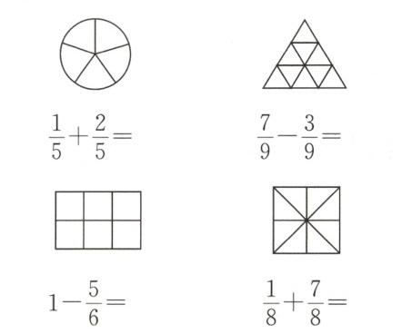 $\frac{2}{9}+\frac{5}{9}=$ $\frac{3}{8}+\frac{4}{8}=$