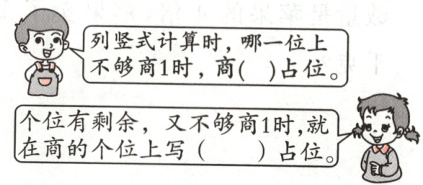 要想商中间有0,$\square$里可以填( );要想商末尾有0,$\square$里可以填( )。