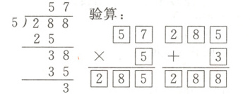 四 小红在计算有余数的除法时,把被除数356看成了386,这样商比原来多了5,而余数没变,正确的除数是( ),余数是( )。