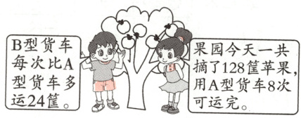 果园今天一共摘了128筐苹果,用A型货车8次可运完。