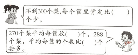 3. 如果平均放在5个篮子里,每个篮子里可以放多少个梨?还剩多少个?