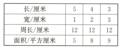 观察上表,我发现:周长相等的不同长方形,它们的面积(不相等)。
