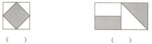 $\frac{1}{2}$@@$\frac{1}{2}$@@解析:左边的图形,将里面涂色小正方形的对角线连起来,发现涂色的小正方形占大正方形的$\frac{1}{2}$;观察右边的图形,发现左、右两个图形中的涂色部分分别都占图形的$\frac{1}{2}$,所以整个涂色部分占整个图形的$\frac{1}{2}$。