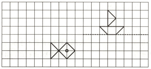 (2)以虚线为对称轴,画出小船的轴对称图形。(2分)