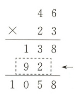 13. 如右图,列竖式计算 46×23 时,箭头所指的数表示( )。