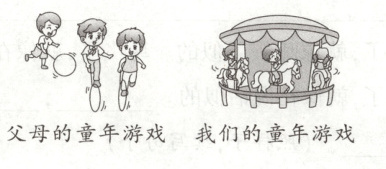 观察下面两幅图,对比父母与我们玩的童年游戏,说说你的看法或感受,并写下来。