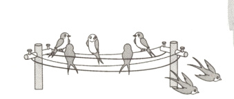 那边还有飞倦了的几对,闲散地在纤细的电线上休憩−嫩蓝的春天,几支木杆,