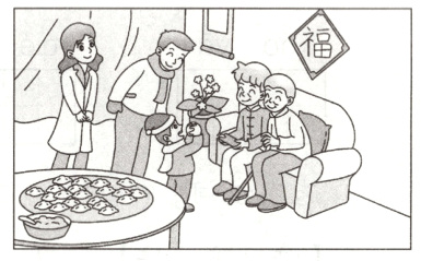 [用一用] 试着用上这些词语:穿新衣 拜年 高高兴兴