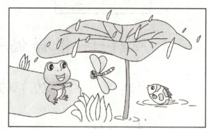 示例:池塘里的荷叶圆圆的、绿绿的。下雨了,小青蛙、小蜻蜓和小鱼儿都躲到荷叶底下避雨,他们说:“大大的荷叶不仅好看,还有这么大的作用呢!”荷叶听了,开心地笑了。