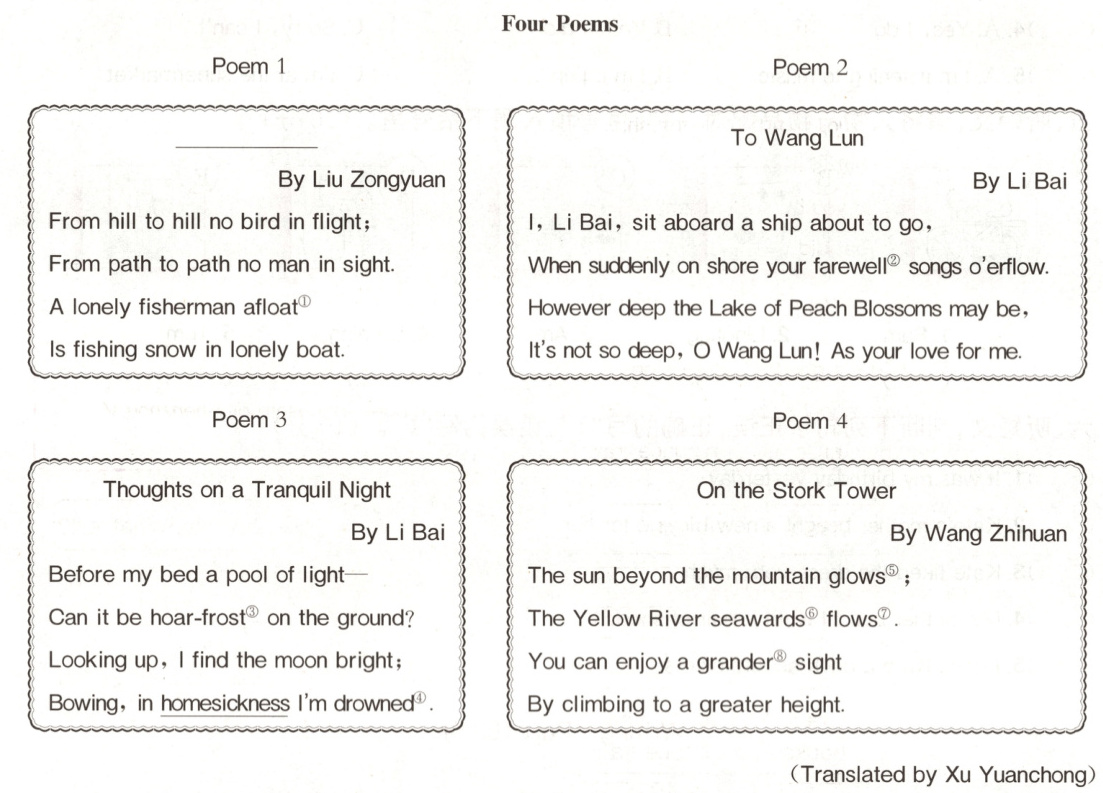 ( )5. According to Poem 4,what would Wang Zhihuan agree?