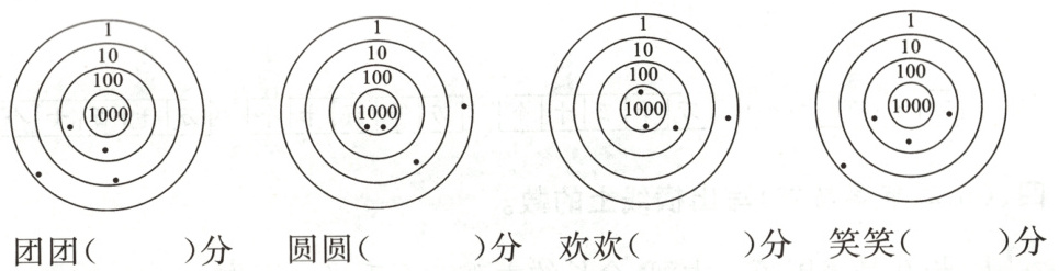 四、四个小朋友玩飞镖,他们各得了多少分?