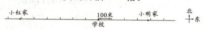 四、小明家在学校东面385米处,小红家在学校西面602米处。