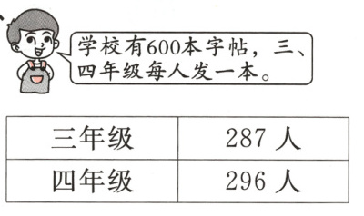 3.600 - 583 = 17答:字帖数和学生人数相差17。