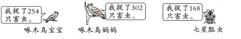 1. 啄木鸟妈妈比啄木鸟宝宝多捉了多少只害虫?