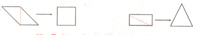 五、用每组的第一个图形怎样剪可以拼成第二个图形?在图中画一画。