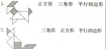二、涂一涂,把长方形涂红色,正方形涂蓝色,平行四边形涂黄色。