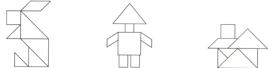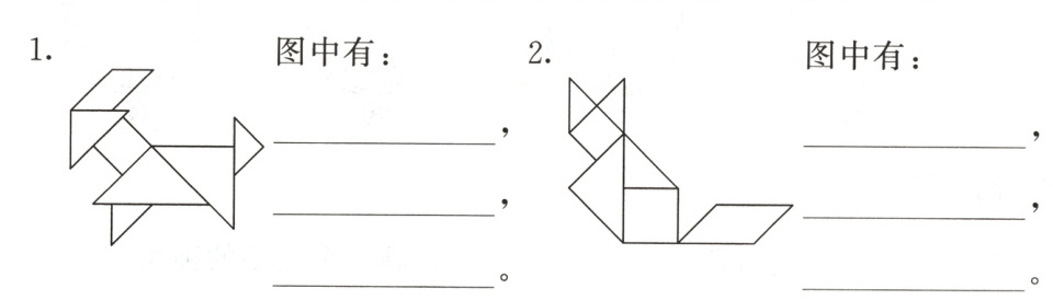 三、(成都市金牛区)分别找出三个你认识的图形,涂一涂,填一填。