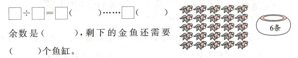 一、把25条金鱼放在鱼缸里,每个鱼缸里最多放6条,至少需要几个鱼缸?